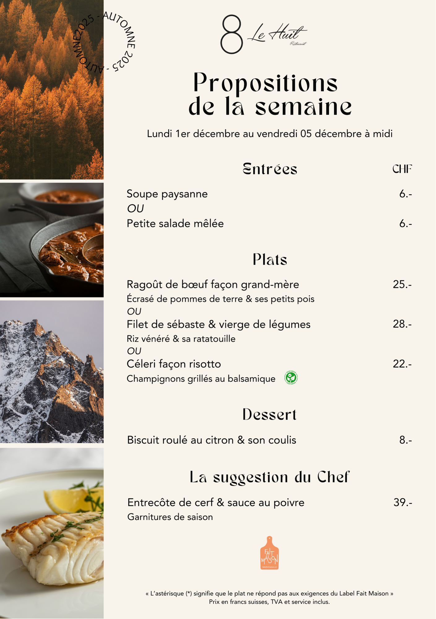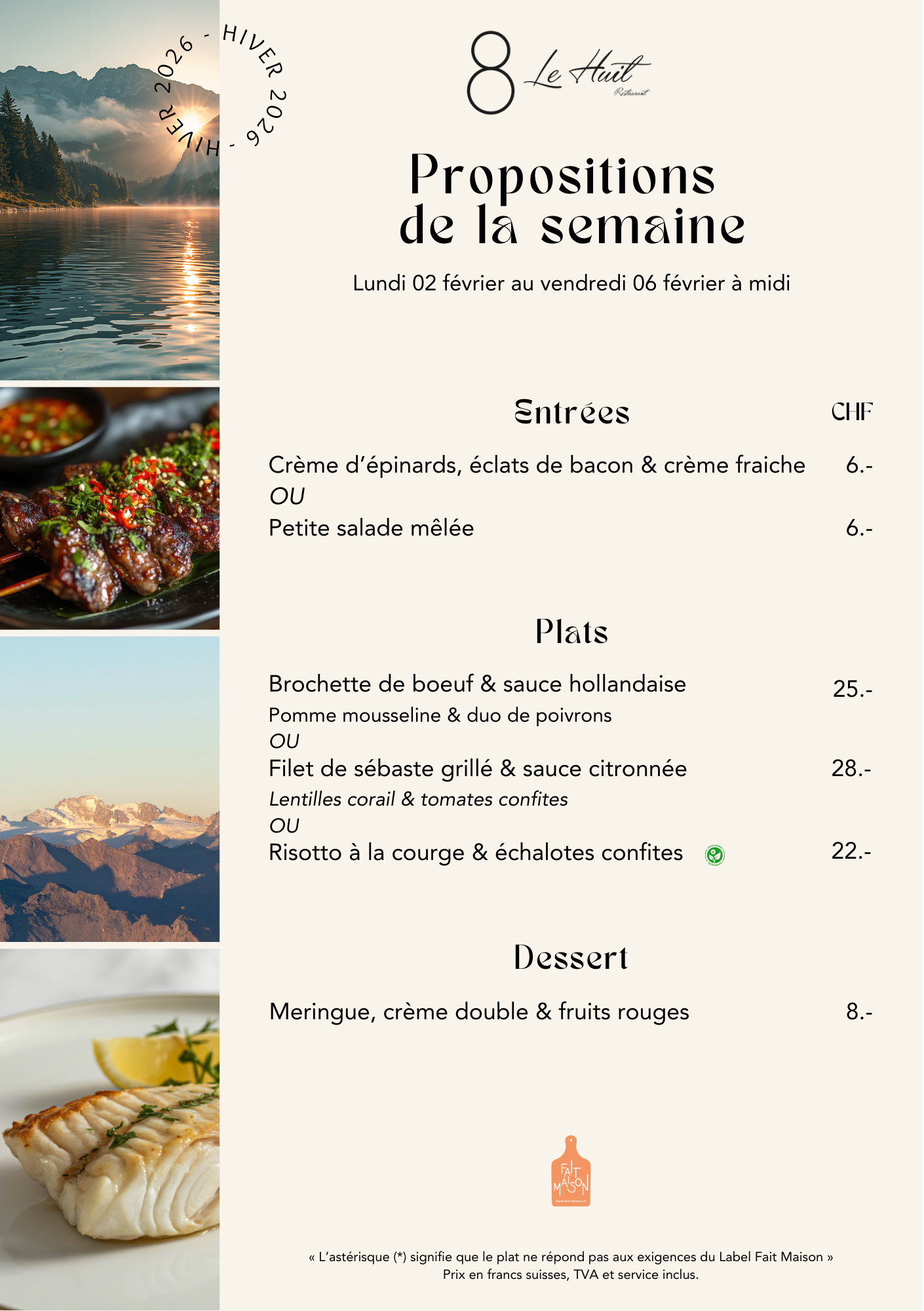 Our restaurant Le 8 is opened every day from 12 am to 2 pm and from 7 pm to 9:30 pm.